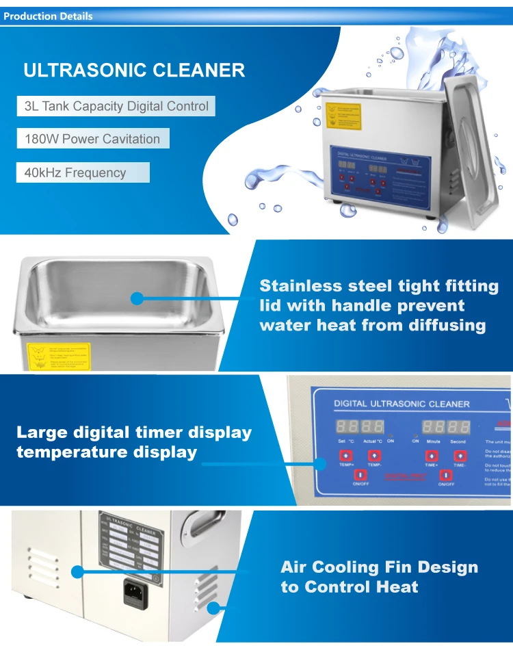 Best Brand New 3L Stainless Steel Digital Timer 220W Ultrasonic Cleaner Heater
