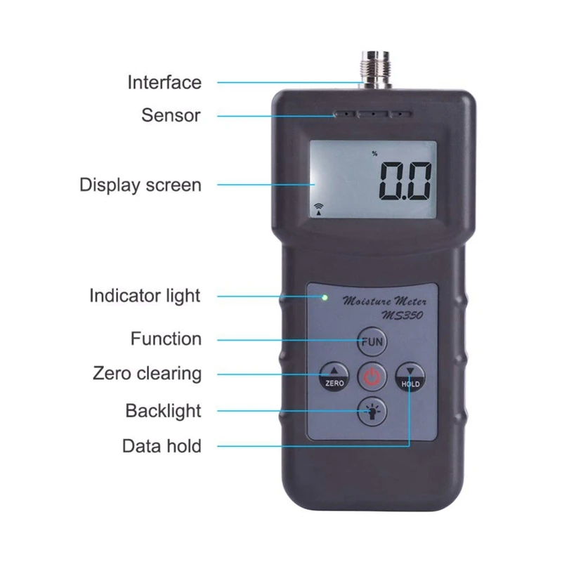 Measuring Range 0-80% Ms350 Portable Digital Capacitive Chemical Raw Materials Moisture Meter