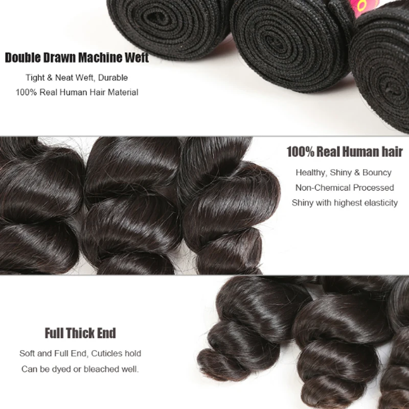 HOT Sale Addbeauty Products Brazilian Loose Wave Human Remy Hair Bundles Extension Weave 3 Piece A Lot Natur